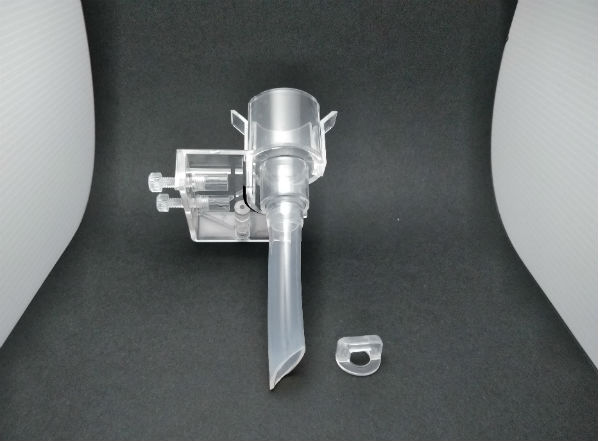 リングバーなるパーツを、本体の内側に配置します。下の写真では右側の小さなパーツを、ペットボトルの先端が入る穴の中に入れます。
